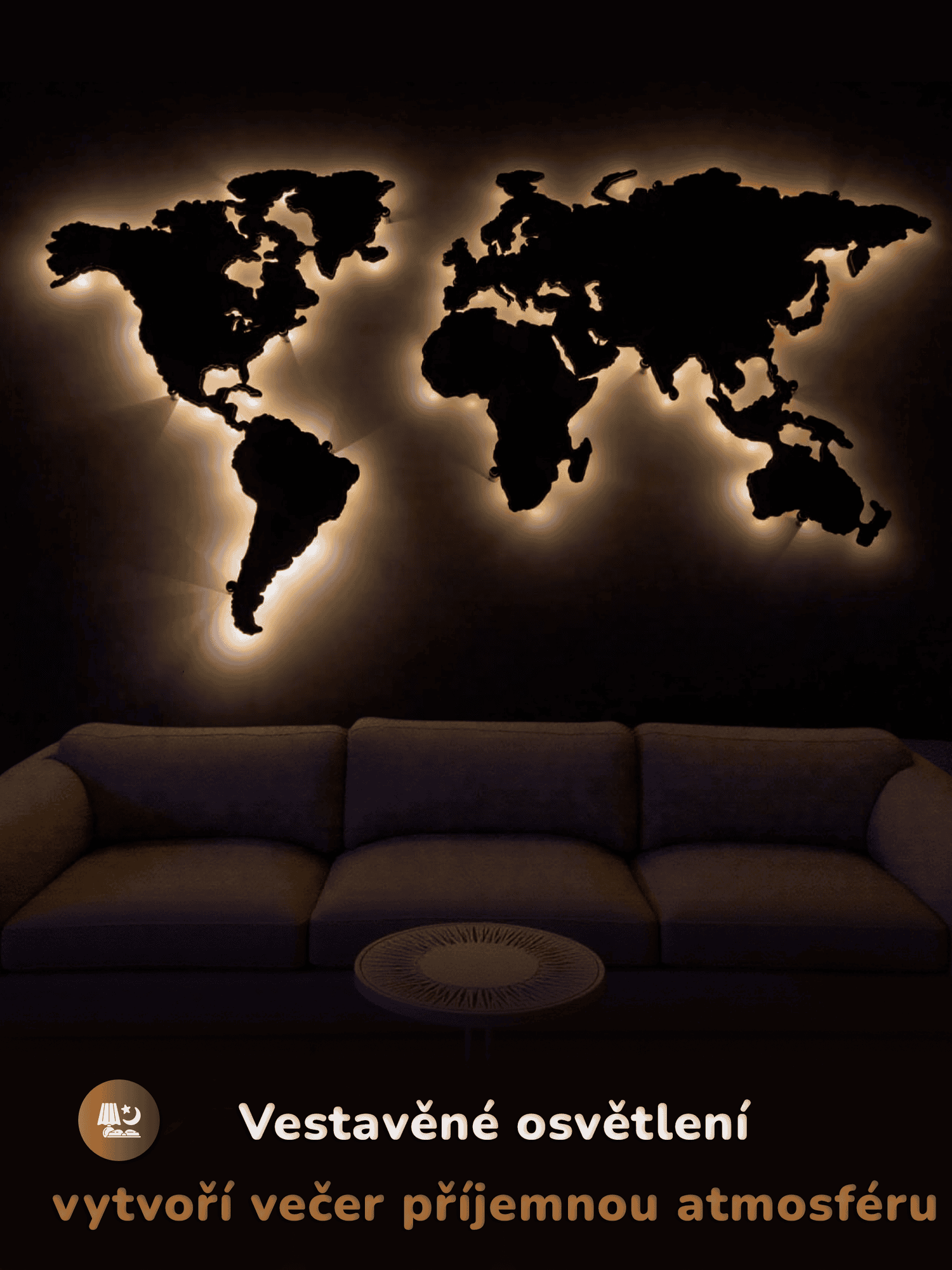 Integrované noční podsvícení poskytuje jemné teplé světlo a večer vytváří příjemnou a uklidňující atmosféru. Díky tomu se mapa stává nejen vzdělávací pomůckou, ale také krásným dekorativním prvkem, který se líbí dětem i rodičům.