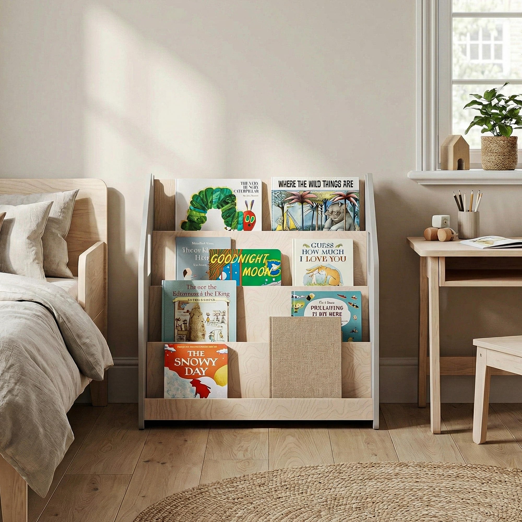 Představujeme Montessori polici na knihy, navrženou podle principu „Pomoz mi, abych to udělal sám“. Děti si mohou samy vybírat a ukládat knihy, rozvíjí se jejich samostatnost a zodpovědnost a učí se udržovat pořádek v pokoji.